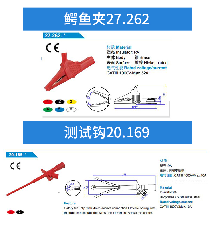 艾邁斯33.110雙色萬(wàn)用表測(cè)試組套 包含鱷魚夾測(cè)試鉤針不含尼龍包