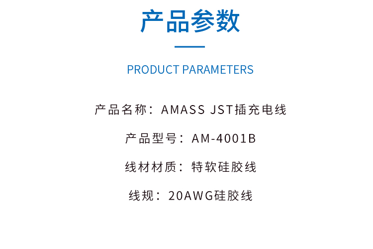AMASS出品JST單頭接線 公頭/母頭 線長(zhǎng)10cm 20AWG特軟硅膠線