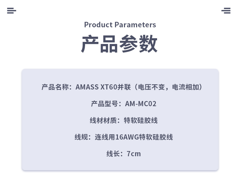 AMASS出品 XT60并聯(lián)線 線長7cm 1母2公 電流相加 16AWG硅膠線
