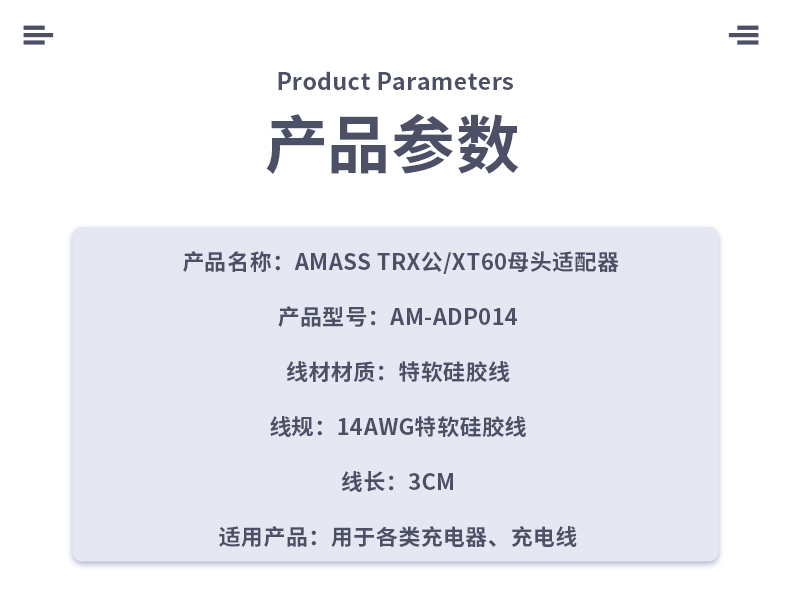 AMASS出品 航模轉(zhuǎn)換線 XT60母轉(zhuǎn)TRX公適配線 XT60-TRX電池轉(zhuǎn)換頭