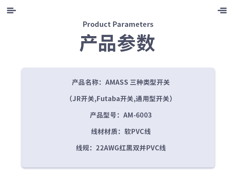AMASS三線開關(guān) 帶充電口 航模開關(guān) FUTABA/JR開關(guān) 通用型開關(guān)