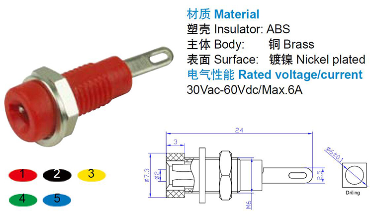 24.101艾邁斯2mm面板插座銅鍍金鍍鎳接線柱開孔直徑5mm耐電流10A