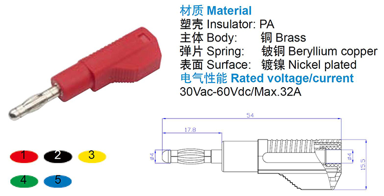 艾邁斯25.454 4mm安全型銅鍍鎳香蕉插頭伸縮護(hù)套正品連接器