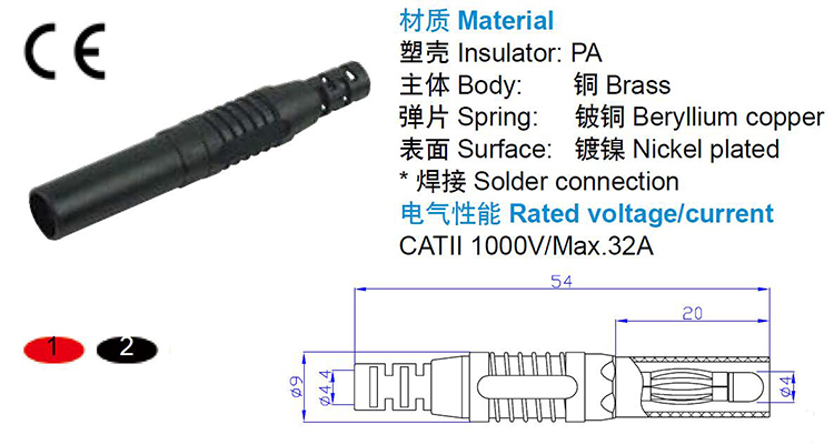 25.503 組裝式4mm全護(hù)套安全型香蕉插頭DIY表筆4mm Shrouded Plug