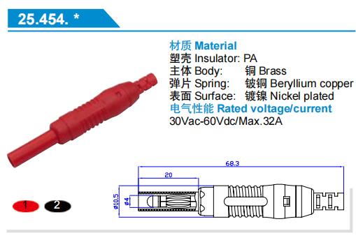 艾邁斯 25.204全銅鍍鎳2mm直桿香蕉插頭