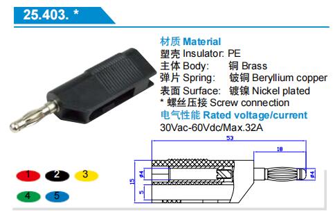 25.208 2mm安全型可疊加純銅香蕉插頭 純銅鍍金高壓帶護(hù)套PA塑 殼耐10A