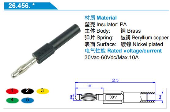 26.205 艾邁斯4mm短路插銅鍍鎳ABS 30Vac-60Vdc/Max.32A AMASS熱賣連接器