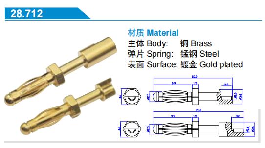 28.712 艾邁斯2.5mm香蕉插頭攝像機(jī)B型端子長(zhǎng)短一對(duì) 全銅鍍金熱賣(mài)配件