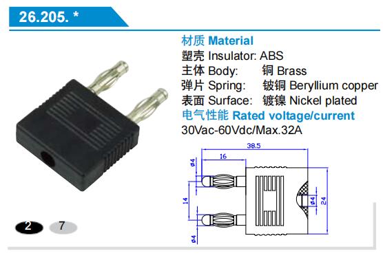 26.205 艾邁斯4mm短路插銅鍍鎳ABS 30Vac-60Vdc/Max.32A AMASS熱賣連接器
