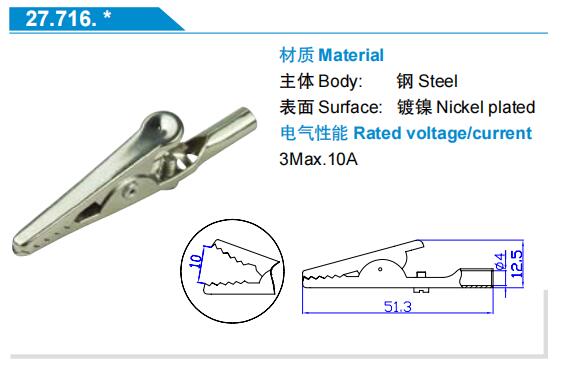 27.719 艾邁斯鋼質(zhì)鱷魚夾4mm插孔連接或螺絲接線優(yōu)質(zhì)熱賣正品AMASS夾子