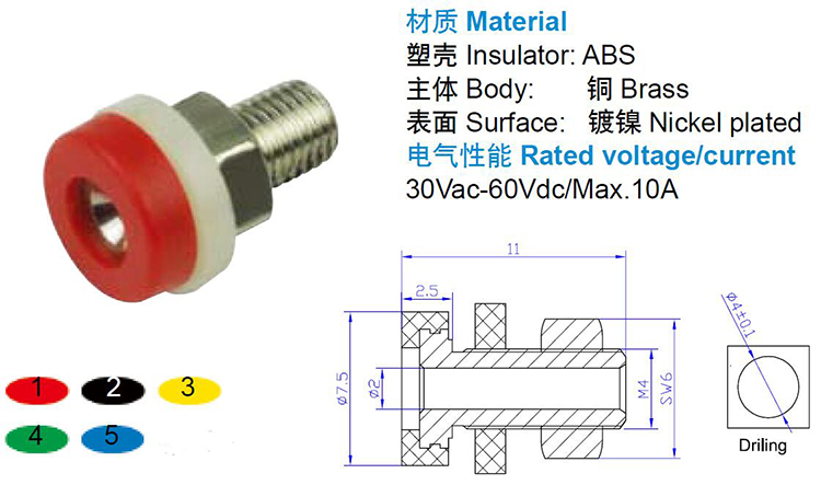 艾邁斯2mm面板插座 頂部螺紋 教學(xué)儀器用 短型 插孔鍍鎳耐10A熱賣