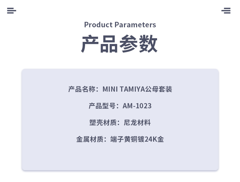 AMASS 小田宮插頭 端子鍍7u厚24K真金 MINI TAMIYA公母套裝 尼龍