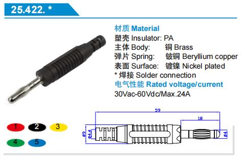 艾邁斯25.422 4mm香蕉插頭銅鍍鎳焊接型接線端子耐24A